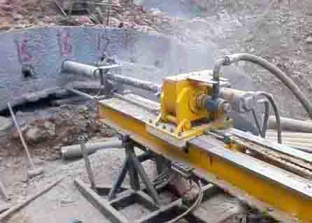 2. When drilling a hole in thicker (30~50 m) fractured zone or congeries, rear power head connected with the inner drilling tool and DTH hammer, to realize percussion rotary drilling, in the meanwhile, the front power head rotates the follow-up casing for protecting the hole wall.